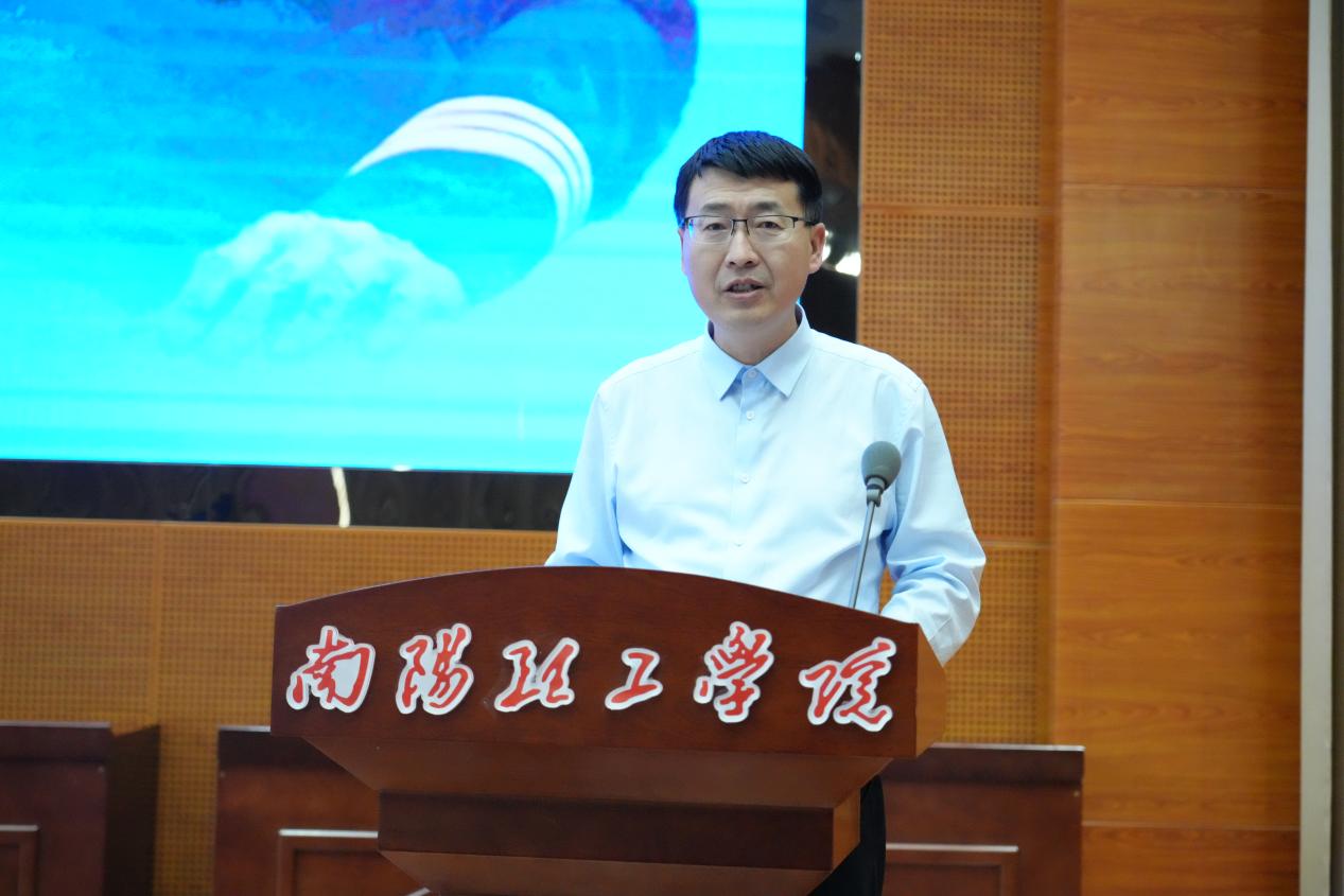 校党委书记安士伟会见朱明远一行,党委副书记、工会主席董豪,副校长高芳放,中国工程院院士专家成果展示与转化中心总工程师张砚戟,南阳市科协党组成员、副主席张磊,南阳市科协学会部部长常立军出席宣讲会,校长助理常军乾主持,400余名师生代表参加此次宣讲会。