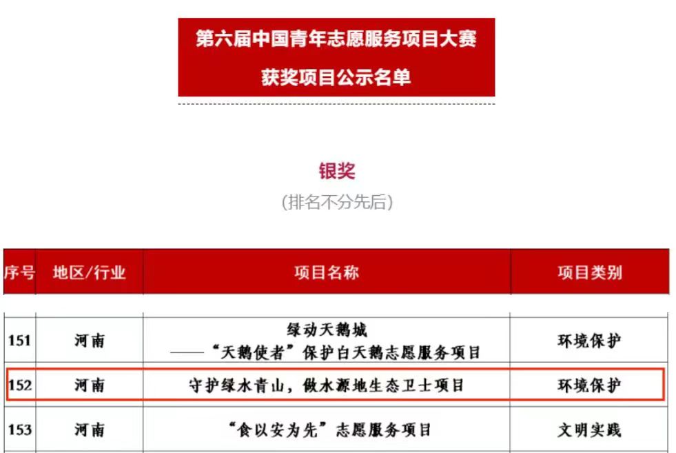 本网讯(特约记者/路守通)11月12日至13日,第六届中国青年志愿服务项目大赛全国赛终评在北京和山东济南举行。近日,从大赛组委会获悉,我校生物与化学工程学院“守护绿水青山,做水源地生态卫士”项目从来自全国38个省级赛会单位的1000个志愿服务项目中脱颖而出,获得国赛银奖。