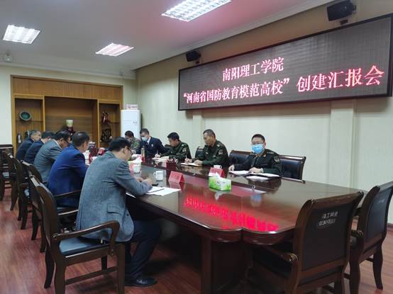 本网讯(特约记者/王吉春)10月25日,南阳军分区政治工作处主任胡彬冰、宛城区武装部政治委员曹武军一行五人来校考核“河南省国防教育模范高校”创建工作。副校长葛晨光主持汇报会,党政办公室、党委学工部、人民武装部、团委主要负责人参加汇报会。