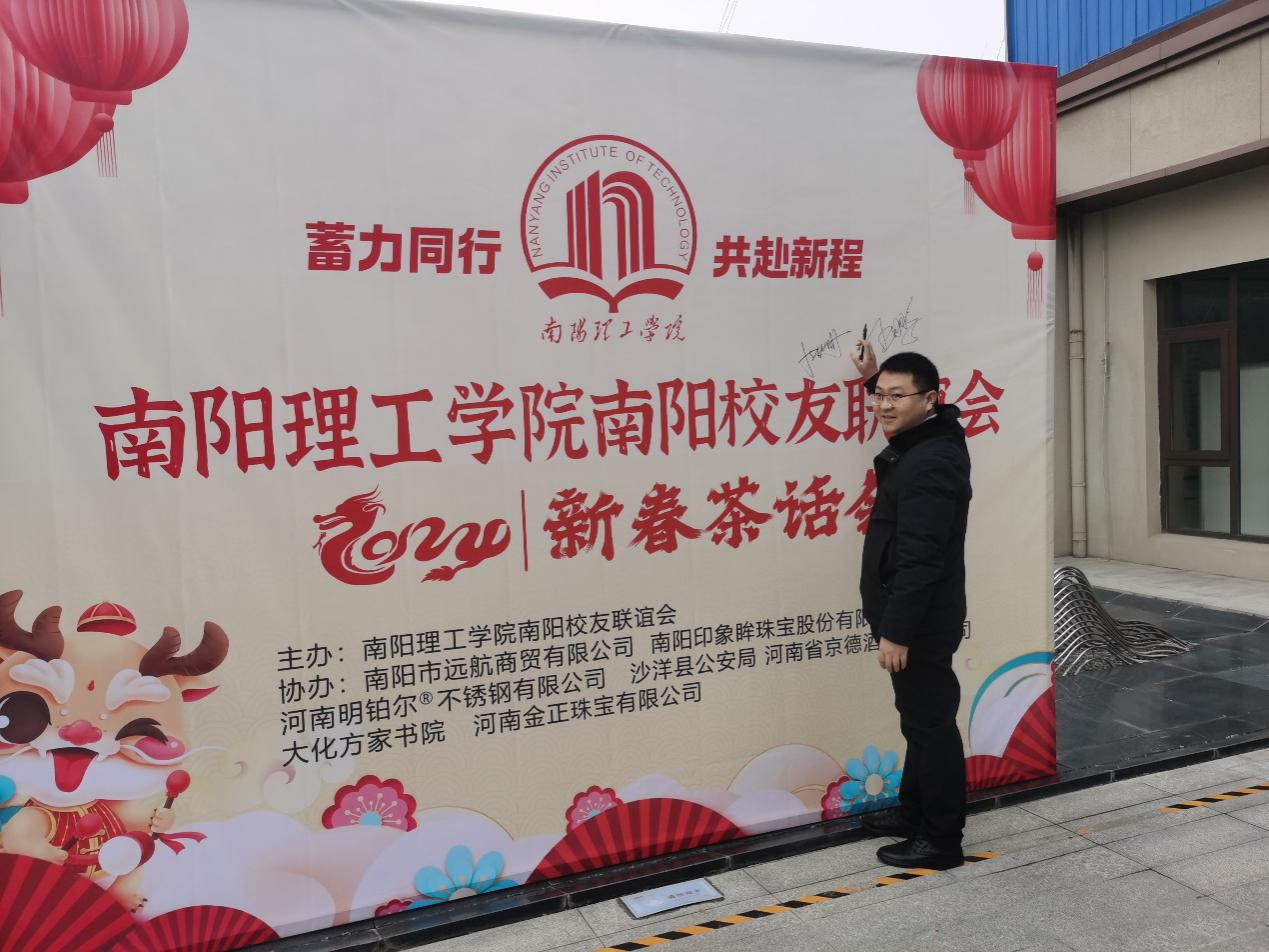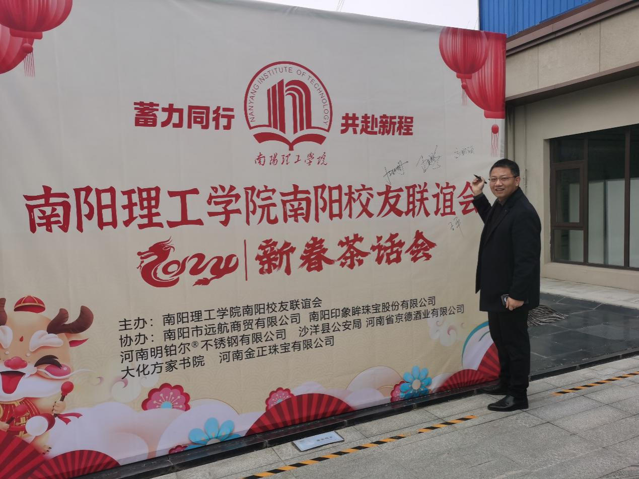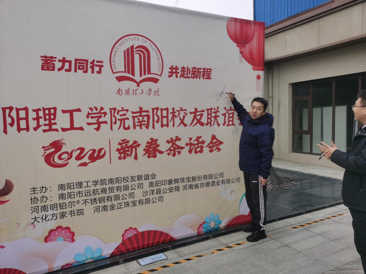 本网讯(特约记者/闫阳)探梅时节,寒色呈祥,校友纷至,再度聚首。1月20日,由南阳理工学院南阳校友联谊会主办,南阳市远航贸易有限公司、南阳印象眸珠宝股份有限公司、河南明铂尔不锈钢有限公司、沙洋县公安局、河南省京德酒业有限公司、大化方家书院、河南金正珠宝有限公司协办的《蓄力同行、共赴新程——南阳理工学院南阳校友联谊会2024新春茶话会》在南阳大化方家书院隆重举行,南阳理工学院副校长葛晨光教授;招生就业处处长、校友联谊总会会长胡楠;校友联谊总会的老师们及南阳各界嘉宾;南阳市、县校友代表和外地校友代表百余人参加了此次盛会。