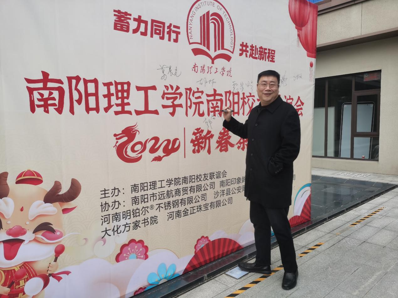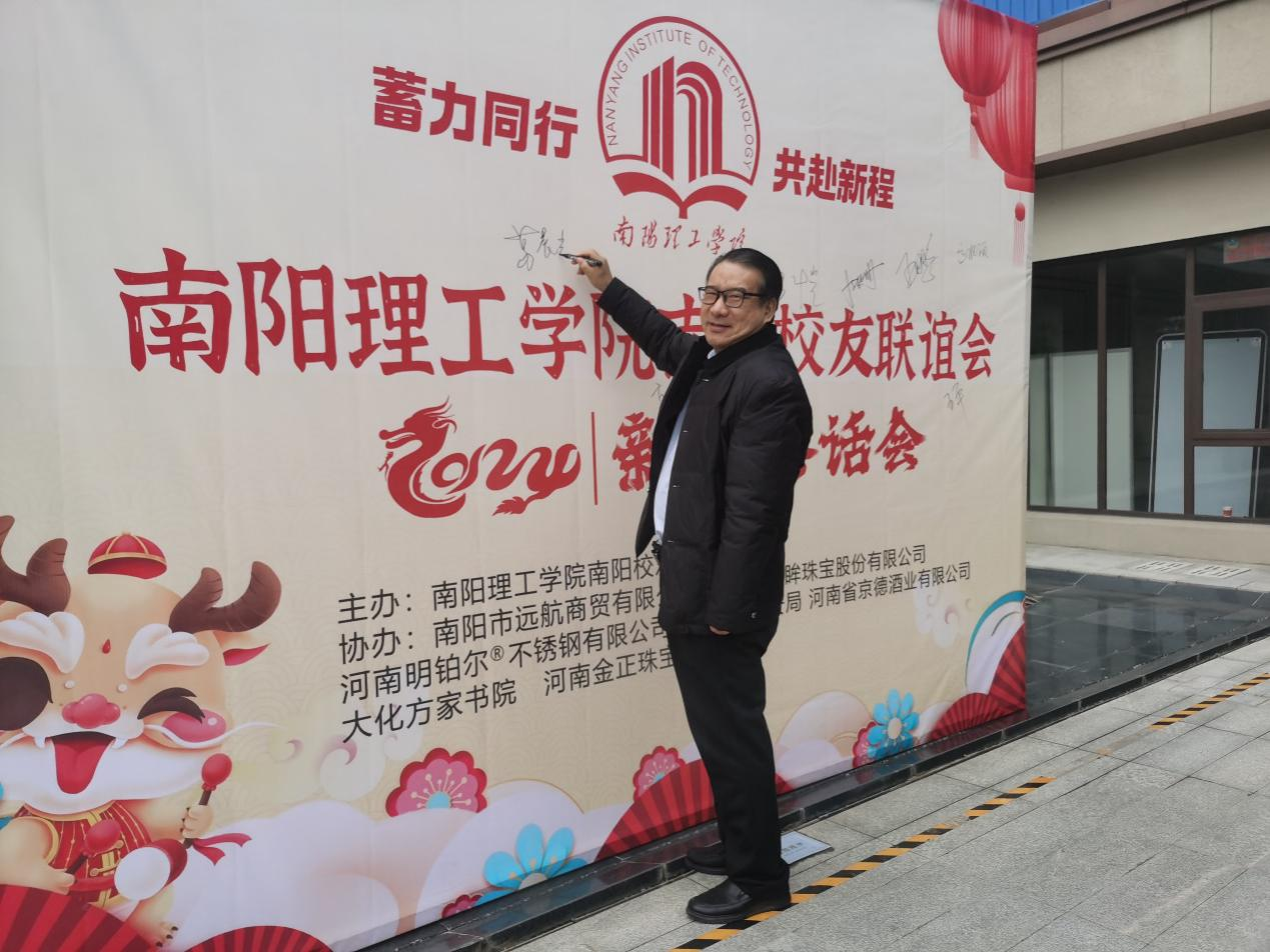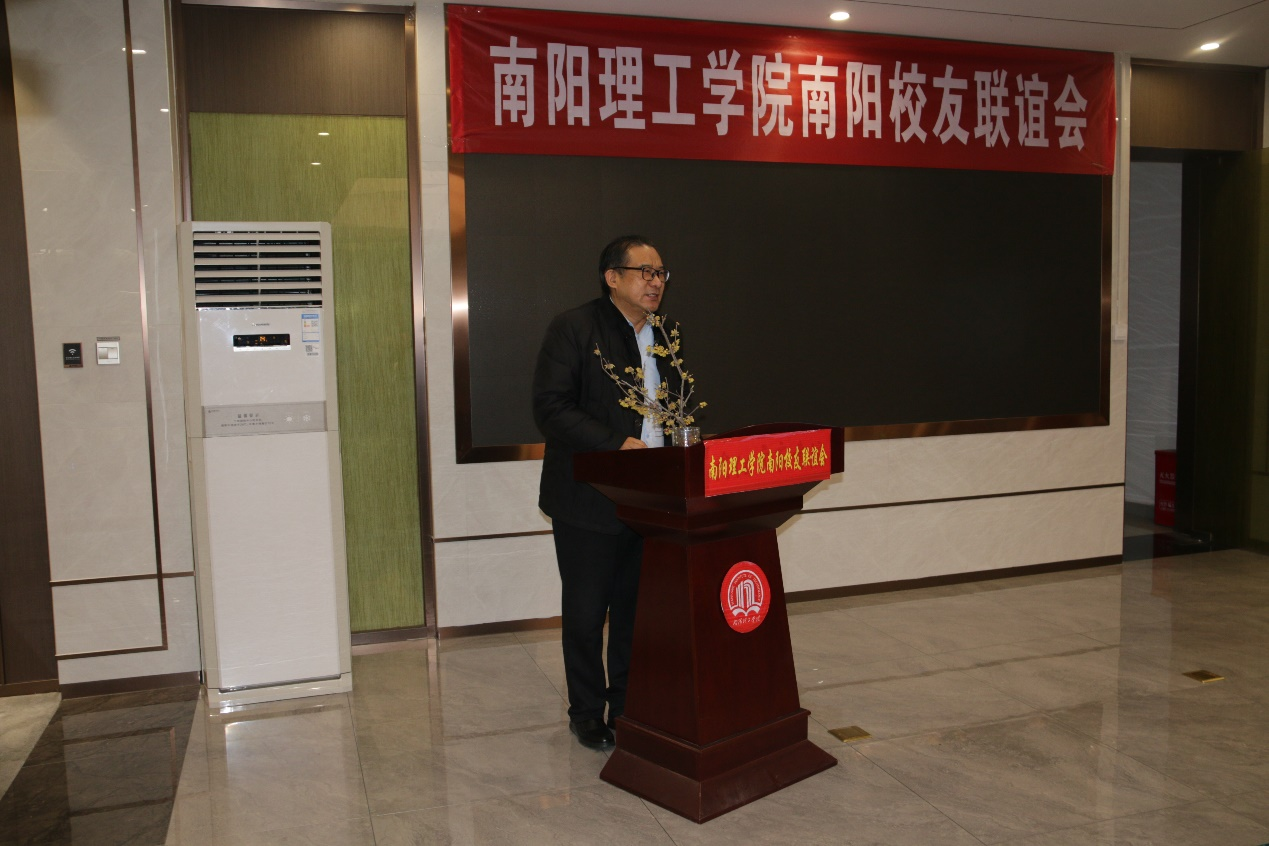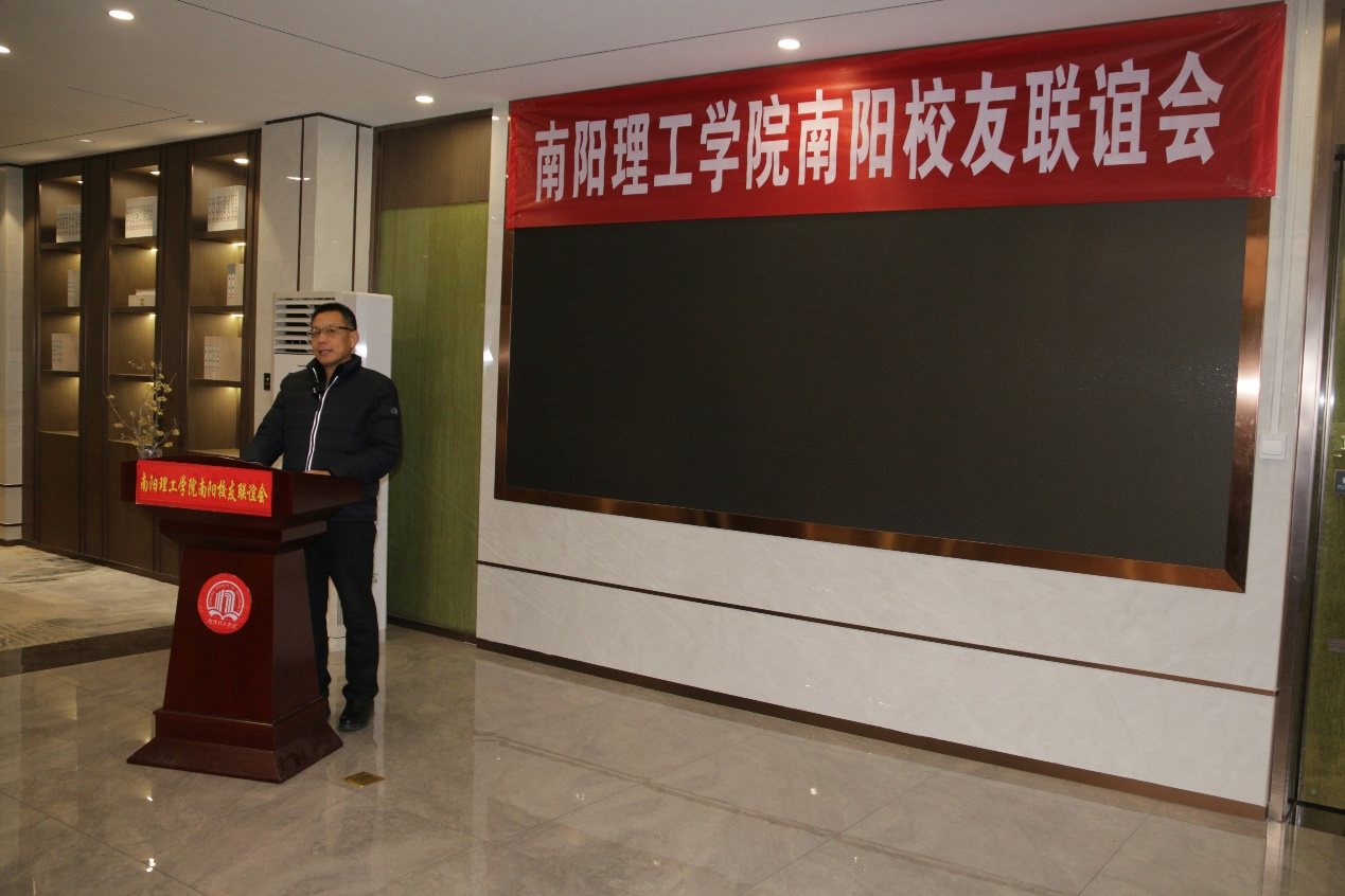 南阳理工学院副校长葛晨光教授代表学校对各位校友表示热烈欢迎并致以新春的祝福,就近年来南阳理工学院在教学、科研及人才培养、新校区建设情况等多方面进行了详细介绍,希望所有校友都能够积极参与和支持母校的建设发展,积极为母校推荐和引荐优秀人才,并回馈社会。