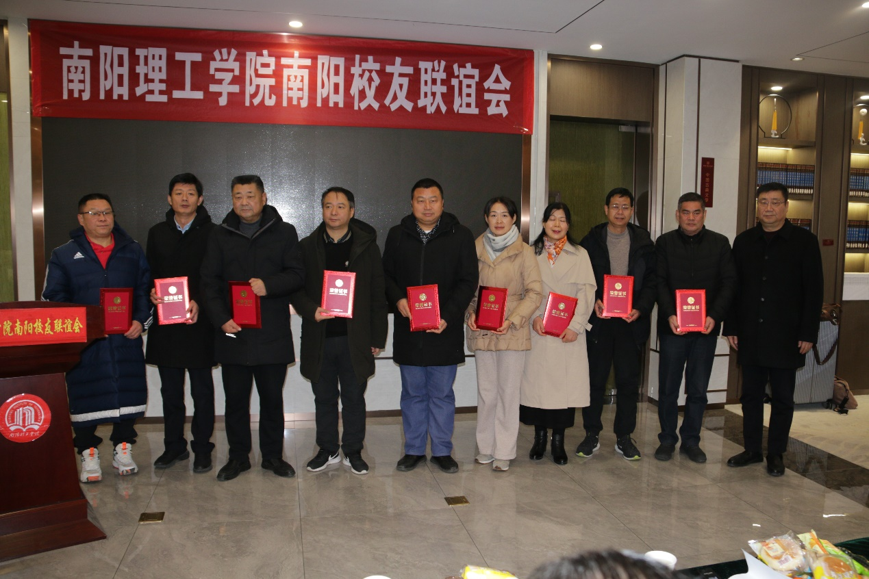 会长华文海总结南阳校友联谊会成立以来工作情况并规划2024年工作。他说,南阳校友联谊会成立时间虽短,但始终围绕“联络校友感情,了解校友需求,传播校友成就,展示校友风采,拓展校友资源,健全校友组织,凝合校友力气推动学校发展”的宗旨,坚持为学校发展效劳、为广大校友效劳、为社会发展效劳,并落实到实处。如,2023年6月3日,召开了南阳理工学院南阳校友联谊会换届成立大会筹备会;2023年6月9日,协办了“红心永向党·颂歌新时代”2023年度第四期朗诵大赛“南阳理工学院专场”;2023年6月23日,举办了“青春重回首·征程再启航”南阳理工学院校友返校日活动暨南阳校友联谊会换届大会;2023年7月8日,协办了2023年“金正珠宝杯”南阳夏季杯排球联谊赛;2023年10月25日,承办了由南阳理工学院校友联谊总会举办的“关爱生命,关注健康”专家进校园大型义诊活动;组织校友参观考察了副会长杨志强的印象眸珠宝有限公司、副会长仝奋飞的京德精酿啤酒有限公司、校友联谊总会副会长李伟和郑州校友联谊会会长张克奇的天力电气有限公司等。组织校友前往社旗县、方城县拜访校友企业,开展交流和考察。与南阳理工学院校友联谊总会老师和校友们一起,参加了郑州校友联谊会组织的校友企业走访活动,前往蓝盾信息安全技术股份有限公司河南分公司,河南东方云盾信息技术有限公司、郑州中航测控技术有限公司、广州博厦建筑设计研究院有限公司中州分院参观考察座谈交流。为校友企业金正珠宝公司创作的广播剧《礼物》在《学习强国》等多个平台上刊播。受邀参加郑州第二届校友会成立暨2024年新春茶话会等活动,都收获颇丰或取得了极大的成功。新的一年南阳校友联谊会有新的规划,一是成立校友之家,完善南阳校友会的组织架构,让更多优秀校友走进南阳校友联谊会的核心圈子,为更多的校友做好服务。二是通过座谈会的形式,争取让不少于3000名校友,走进南阳校友联谊会。通过走访企业的形式,让不少于100家的校友企业,能够走进南阳校友联谊会。三是利用现代先进技术,把南阳校友联谊会平台打造成一个相对完整的生态平台,拥有校友生活圈、工作圈、创业圈、帮扶圈等,交流互通,互帮互助,成为真正的校友之家。