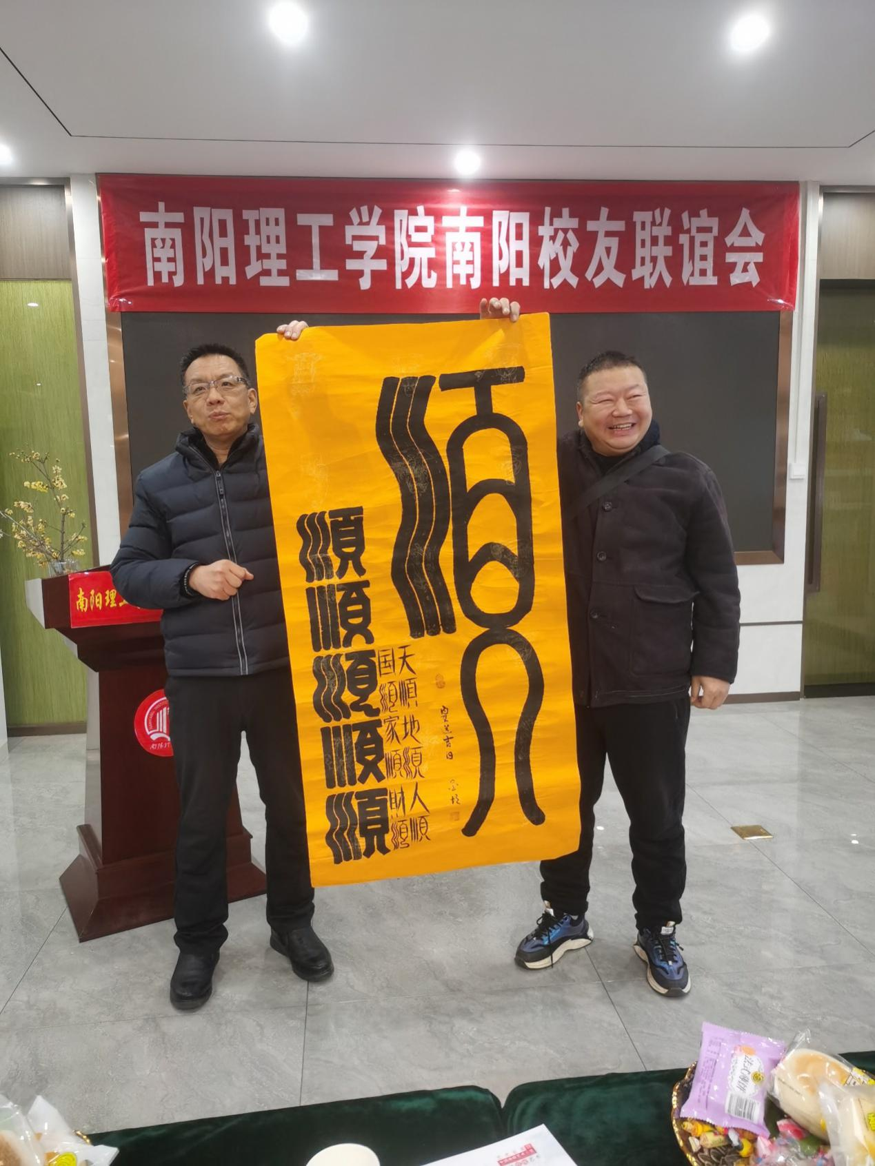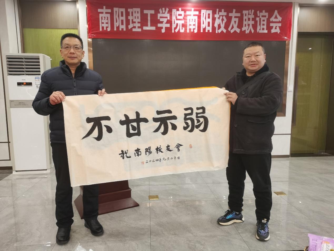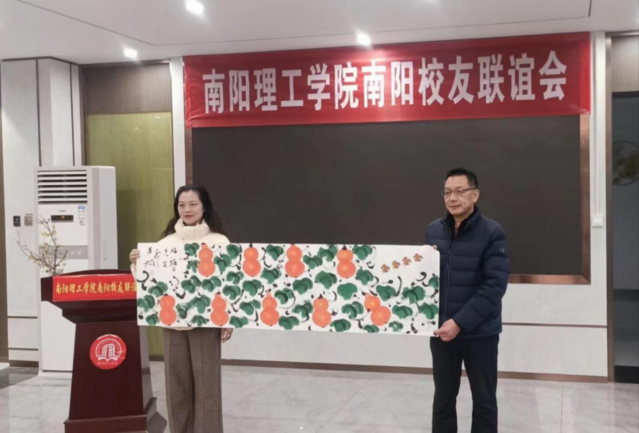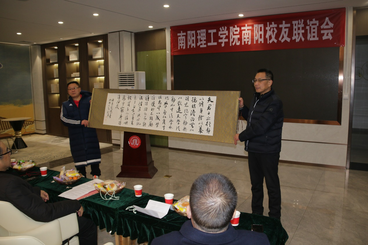 随后,部分校友向南阳校友联谊会赠送了书法、绘画等作品。