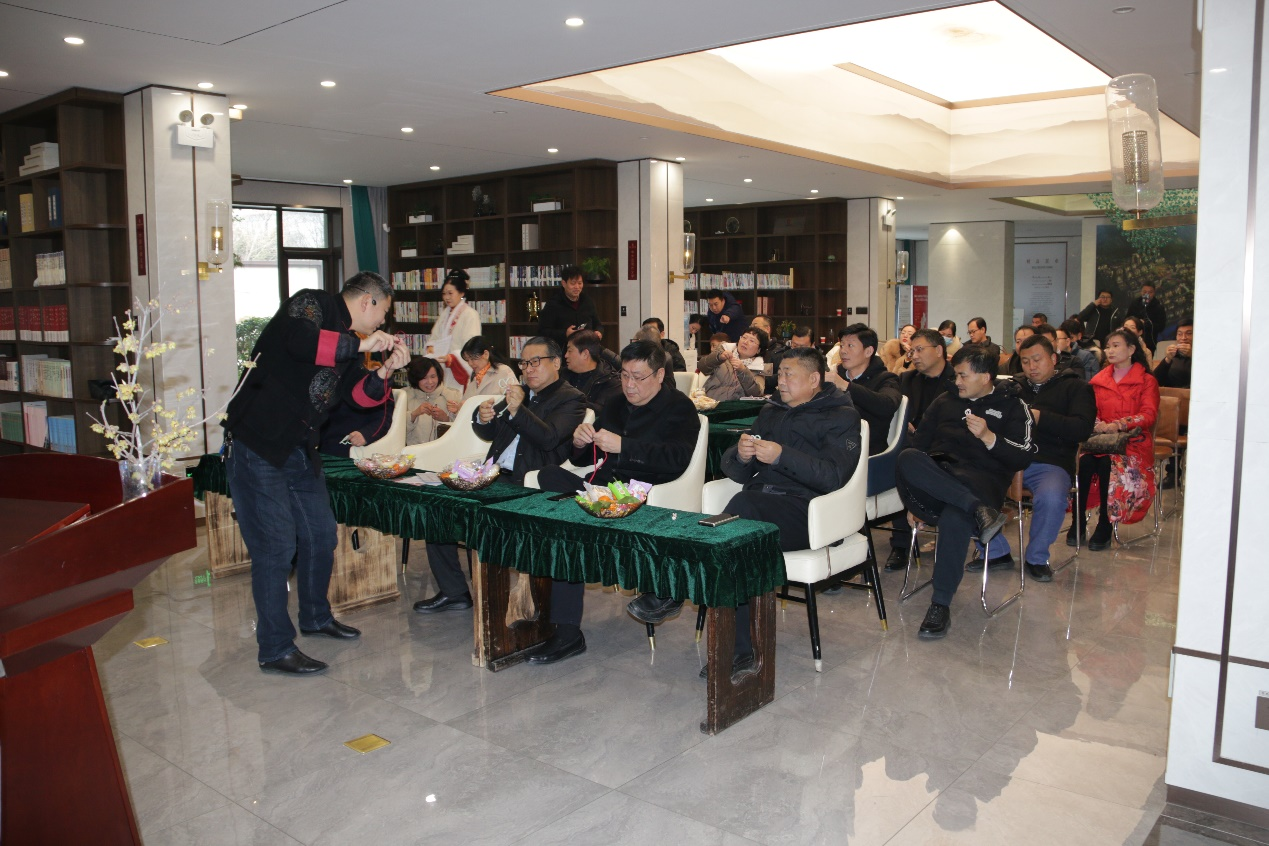 南阳汉服文化传播学会的嘉宾张佳萌、梁建保、陈燕丽、张晓玉向大家传授传统服饰盘扣技艺