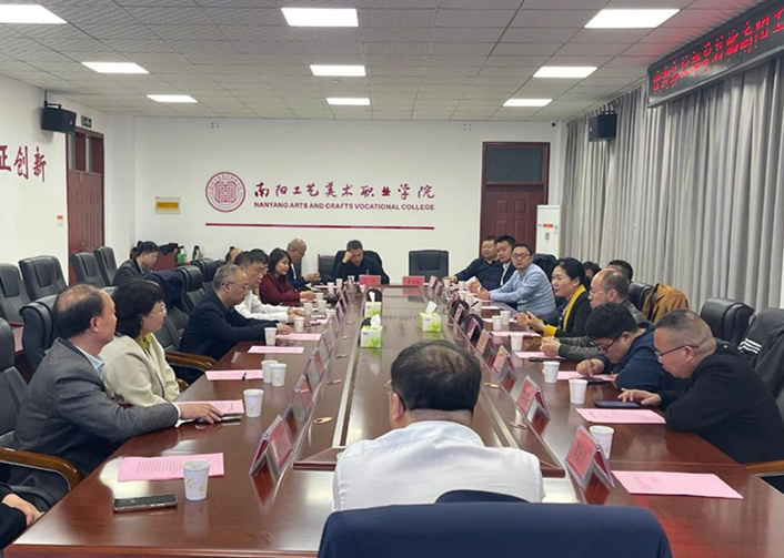 本网讯(特约记者/刘洪义)4月2日上午,南阳校友联谊会校友代表华文海、刘洪义、王平、杨志强、胡志明、高明、惠豪先 、柴秀伟、段显恺、杨桂林、郭金洋、张占儒、 朱赟、张至星,曹文端、王占儒,和南阳理工学院南阳校友联谊总会秘书长王金、南阳理工学院郑州校友联谊会秘书长王晓、南阳理工学院无锡校友联谊会代表李建浩一起走进南阳工艺美术职业学院参观学习,受到南阳工艺美术职业学院校长胡楠、副校长王道明、李艳丹、镇平县工艺美术中等职业学校校长秦英翔的热情接待。